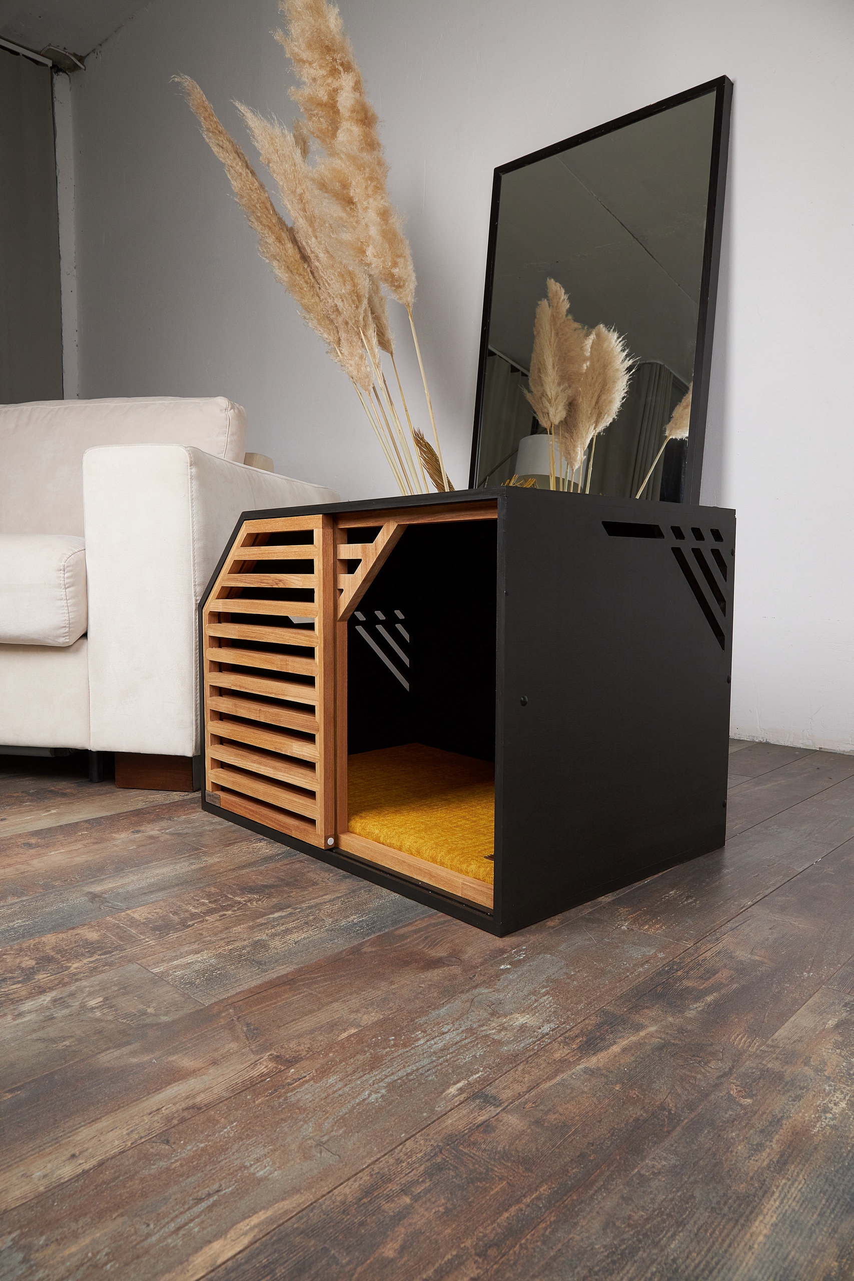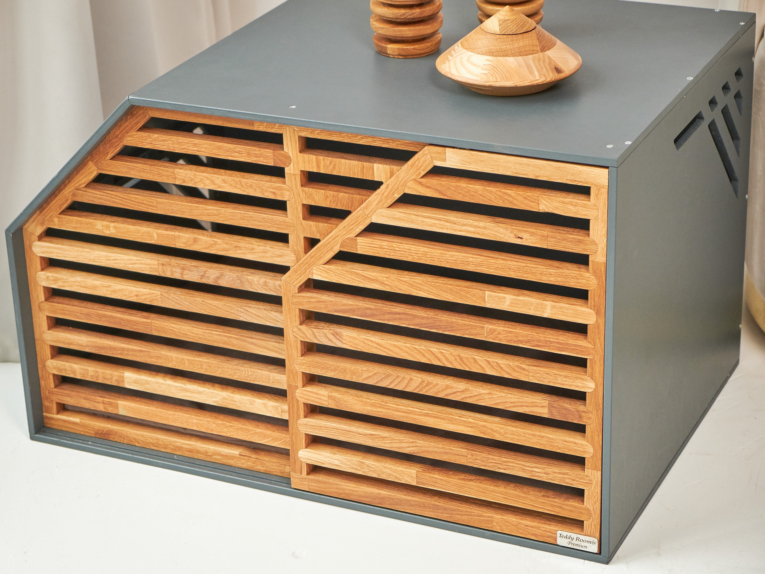 Вольер изготовлен из интерьерной евро фанеры высшего сорта, профессиональное серое матовое покрытие в камере, эмаль безопасная и долговечная, используется для детской мебели и игрушек, имеет сертификаты соответствия. Решетка выполнена из массива кавказского дуба, покрыто натуральным маслом, защищает от царапин, влаги и загрязнений. Раздвижные дверцы открываются по системе купе, фиксируются на прочную скрытую щеколду. Это отличный вариант, как альтернатива клетке, которая портит ваш интерьер и наводит грусть, с нашим вольером такого не случится, он идеально подходит в любой интерьер, преображая его и служа дополнительной поверхностью для использования. воском. Мягкий матрас сшит из прочной, износостойкой, мебельной ткани, имеет два съемных чехла на молнии, один из которых водонепроницаемый( приобретается отдельно). Полностью ручная работа, педантичность сборки и качество материалов гарантируем.